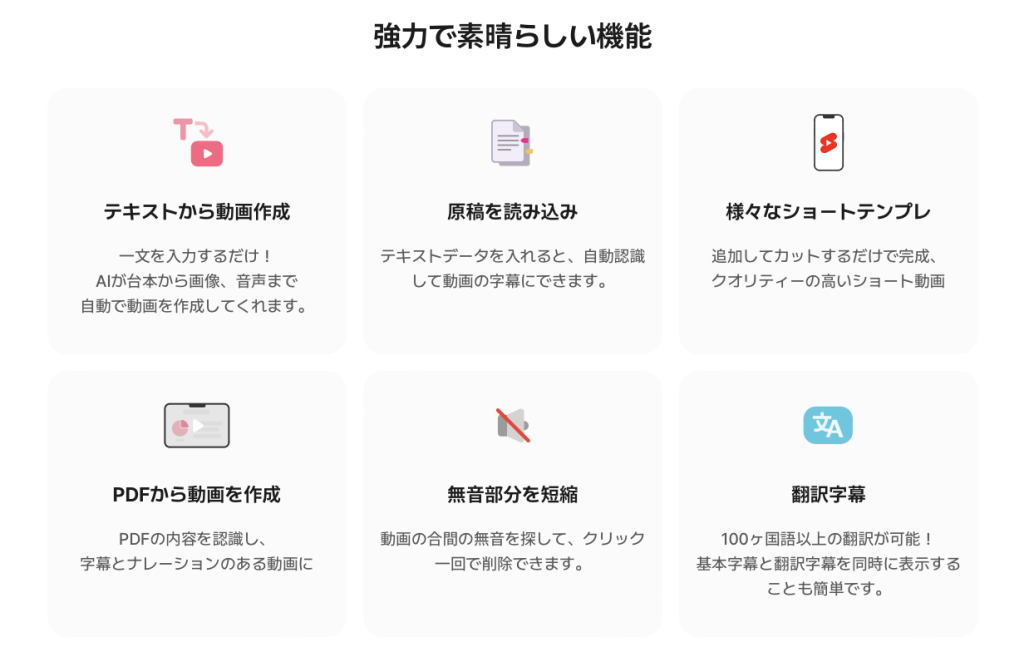 特にYouTubeの解説動画、ビジネス系動画、教育系コンテンツとの相性が良く、初心者でも短時間でクオリティの高い動画を作れるのが魅力です。